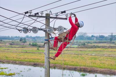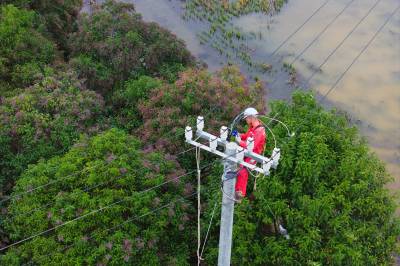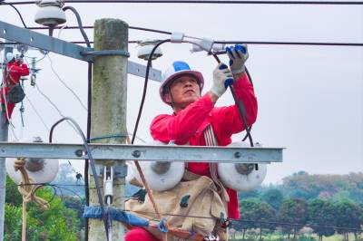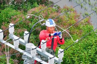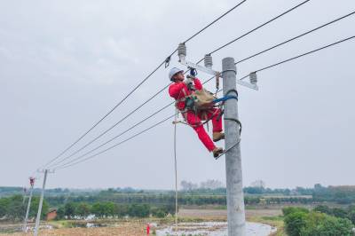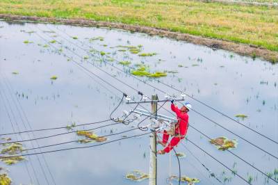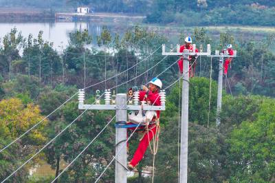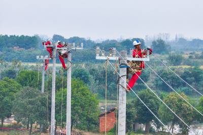 2025年10月29日,在湖北省荆门市沙洋县高阳镇贺集村,电力作业人员正在对农网电力线路进行改造升级施工作业。 当前,国网荆门供电公司抓住秋季施工黄金期,组织电力施工作业人员对农网线路段及台区进行改造升级,补强电网“筋骨”,为当地虾稻联种特色农业发展提供充足电能,助力村民增收致富。
