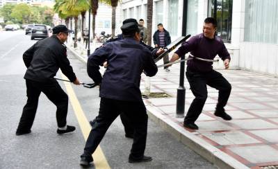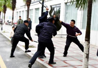2025年10月31日,十堰市郧阳区各行政单位,学校,医院门卫保安不定期抽查发生报复社会恐怖分子的格斗应战能力,平时多演练,战时能胜出,确保社会一方平安。