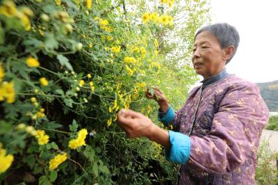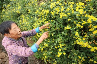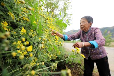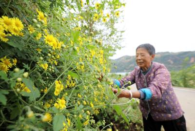 房县是全省野生菊花之乡。每年到秋末菊开时,山岗上、河滩里、树林下、田埂边,遍地金黄的野生菊花成了农民秋末增收的重要山货产品。当地制药商家通过将野菊花烘焙、晾晒、遴选、装袋,销往越南等东南亚市场,拓宽农民增收渠道。
