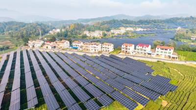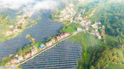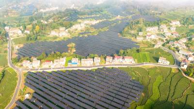 2025年11月2日,湖北省黄冈市英山县杨柳湾镇金鸡岭村,排列整齐的光伏板,与修剪齐整的茶园、错落有致的民居交相辉映,构成一幅乡村振兴美丽画卷。 近年来,湖北省英山县金鸡岭村依托茶园基地,连片打造茶旅融合、农旅融合乡村文旅产业带,大力发展休闲旅游产业,同时,引进光伏发电项目,实现茶光互补,土地综合利用,带动村民增收致富,助力乡村全面振兴。