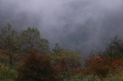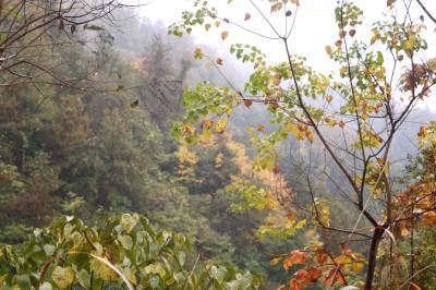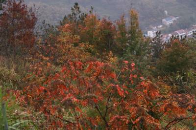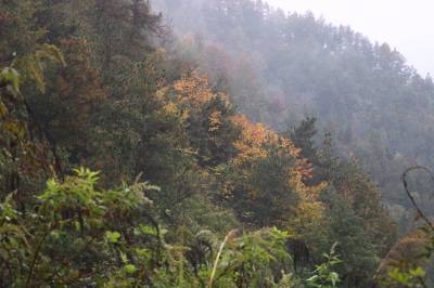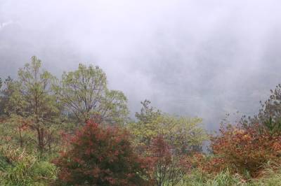 2025年11月9日,雨中的湖北省英山县温泉镇九龙山上,市民、游客趁周末登山欣赏红叶美景。 只见云山雾海中间,只见枫叶从黄、浅红到火红,深浅不一,出现红橙黄绿各种颜色,既浓烈又不失雅致。红似丹砂的乌桕树叶则犹如抖擞的火苗,又似一抹绛红的云霞,让人不由自主地放慢脚步,沉浸在这份不加雕饰的自然之美中,纷纷用相机拍摄这一道道美丽的风景线。