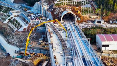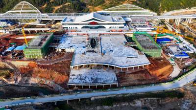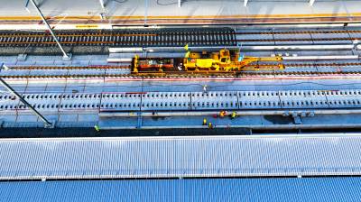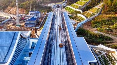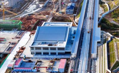 2025年11月9日,十堰市西十高铁郧西县高铁站站内正在铺设铁轨。西十高铁郧西站站前综合交通枢纽工程总规划设计面积约55.6万平方米,总投资15.4亿元,建安工程费10.66亿元。规划设置2站台4股道,站场规划建设面积10000平方米,车站性质为中间站,办理客运作业,车站最高聚集人数800人。西十高铁途经西安、商洛、十堰三市,接入已建成的武汉至十堰高铁,新建正线长255.8公里,设计时速350公里,计划于2026年6月开通运营。其中,陕西段总长169.4公里,湖北段总长86.4公里,沿途设西安东、蓝田、商洛西、山阳、漫川关、郧西、十堰东7站。