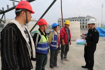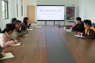 11月11日,湖北省襄阳市劳动保障维权中心干部,深入东津新区建设工地检查“六项制度”落实情况,为农民工宣贯维权知识。