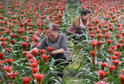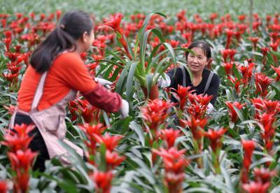 2025年11月11日,湖北省钟祥市柴湖镇花卉产业园内,村民们穿梭于色彩斑斓的花海间,忙着对各类花卉进行养护、采摘,随即打包、装车,将花卉销往上海、杭州等长三角城市。