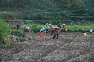 2025年11月13日,湖北省英山县温泉镇百涧河村50多名村民在红薯收获后,抢抓晴好天气种植百合。