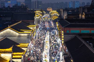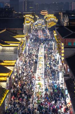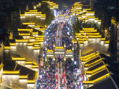 11月15日,市民和游客在襄阳古城北街游览古风市集。 当日,襄阳市“17寻味荆楚·逛襄阳吃江湖”古风市集在襄阳古城举行,吸引众多市民与游客前来,感受襄阳的千年底蕴与市井温情。 近期,湖北省襄阳市推动“文旅+百业”融合发展,通过美食这一烟火气媒介,集中展现城市历史底蕴与蓬勃活力,为秋冬荆楚文旅市场注入强劲动能。