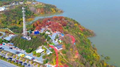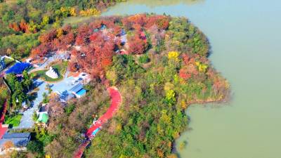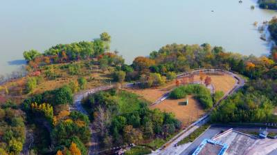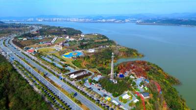 2025年11月18日,湖北省十堰市郧阳,由汉水、水利、法治、青年林、同心、湿地等公园“串联”的汉江南岸线,五彩斑斓,与碧绿的江水、旅游公路相映,宛如画卷。
