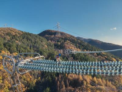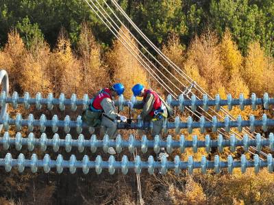 2025年11月18日,宜昌市兴山县昭君镇响龙村,国网湖北超高压公司宜昌运维分部检修人员身着工作服、系牢安全带,在±800千伏建苏线2121号铁塔开展绝缘子更换作业,此次检修计划于11月27日结束。作为“西电东送”核心通道,检修人员精准排查、高效作业,及时消除设备隐患,筑牢跨区绿电输送安全屏障。