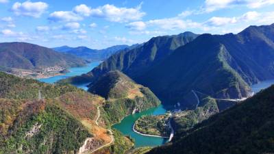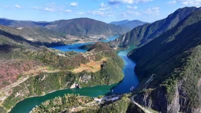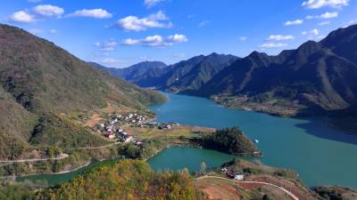 2025年11月18日,十堰市房县南河青峰镇台口村区域两岸层林尽染,一河清流直入长江流域。