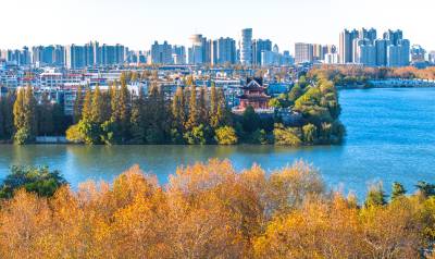 11月18日,襄阳市古城墙与护城河相映成景,色彩斑斓、美景如画,吸引游客前来游玩。 近年来,襄阳市科学有序推进古城保护利用,通过联通城墙游线、打通护城河岸线、美化城下环线、优化滨江路线,重现“城河一体、水城相护”的“华夏第一城池”风貌,文旅吸引力持续提升。