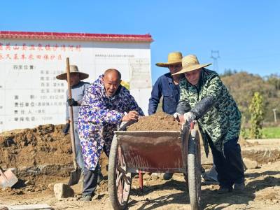 2025年11月19日,湖北省黄冈市英山县沙湾河村,农户抢抓晴好天气进行基本农田微改造,田间地头一派忙碌景象。英山县温泉镇利用冬日农闲时节,组织人员抢抓晴好天气加快推进基本农田改造、农田灌溉水渠等涉农基础设施建设,提高农田利用效率,为来年农业生产、粮食增产、农民增收打好基础。