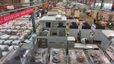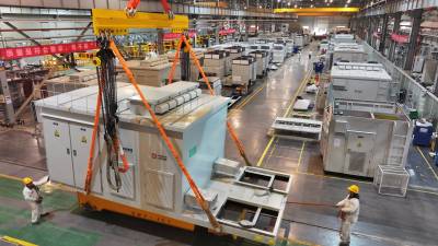 开足马力生产超级“充电宝” 11月19日,中车株洲所旗下襄阳电机开足马力生产储能升压变流一体机,该设备主要应用于风、光等可再生能源发电并网场景,有着超级“充电宝”之称。近十年来,该企业依托“轨道交通+清洁能源”双轮驱动,累计获50项发明专利,新能源版块收入突破10亿元。3天前,襄阳电机举行了储能一体机第1000台下线暨襄阳工业园投产十周年仪式,千台储能一体机下线标志着批量化交付能力提升,为集团“风光水储电氢碳”产业生态提供支撑。(视界网 王虎 摄)