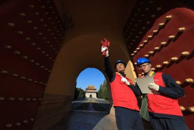 湖北钟祥:世界文化遗产明显陵入冬“电力体检” (客户端采稿)