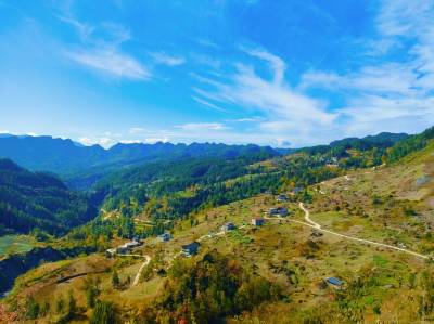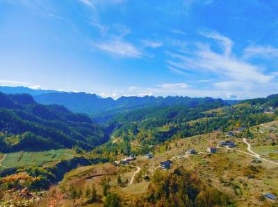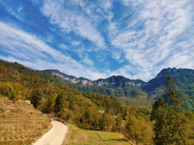 初冬时节,咸丰县二仙岩山脚下的掌上界村,群山巍峨,巨石错落,树木悄然换上冬装。公路如丝带般蜿蜒穿行于山间,民居点缀其间,星罗棋布,一幅静谧壮美的乡村画卷徐徐铺展。