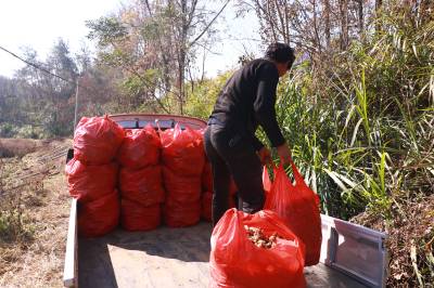 2025年11月22日,在湖北省英山县方家咀乡伯仲桥村80亩生姜种植基地,数十名村民正忙着采收生姜。有人轻挥锄头,小心地将埋在土中的姜块完整刨出,有人仔细清理泥土,让黄亮鲜嫩的生姜显露真容。 分拣装筐的环节井然有序,金黄的姜块与人们忙碌的身影交织,构成一幅生动的丰收画卷。