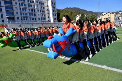 近日,保康县第一中学举办了一场别开生面的趣味运动会,让学生们在趣味活动中锻炼身体,陶冶情操,培养团队合作精神,用健康的身体投身学习之中。 本届运动会兼顾竞技性与趣味性,既设置了田径、乒乓球、羽毛球等传统项目,也创新加入毛毛虫竞速、摸石头过河、无敌旋风跑等趣味项目,多样化的项目设计拓宽了学生参与面,让学生们在运动中释放压力,在笑声中凝聚力量,以更好的状态迎接人生的挑战。(视界网杨韬 张飞摄)