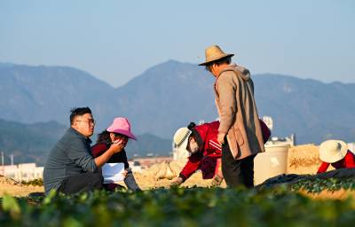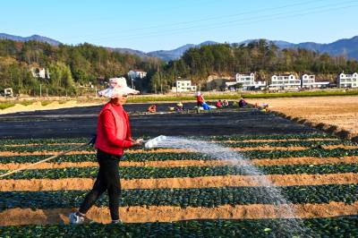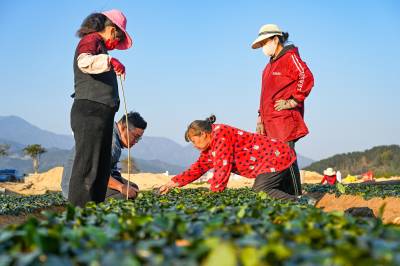 2025年11月21日,在湖北省黄冈市英山县石头咀镇徐套村,野山香大别山无性系茶树良种繁育科技示范园,茶农正在移栽、扦插茶苗。英山县是产茶大县,当前正直茶叶移栽、扦插季节,当地农业、科技、茶叶等部门组织以农技人员为主的党员志愿者深入茶园开展农情调查,为茶农送技术、送服务,现场指导茶农科学做好茶园管理,助力茶叶产业发展。