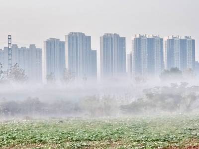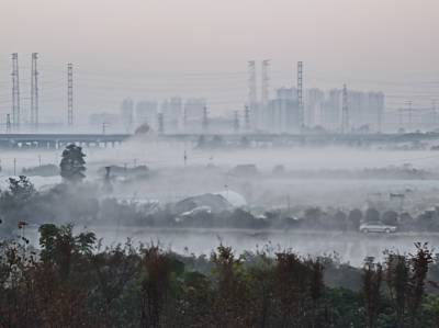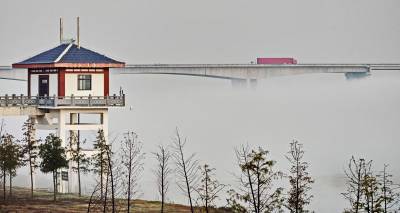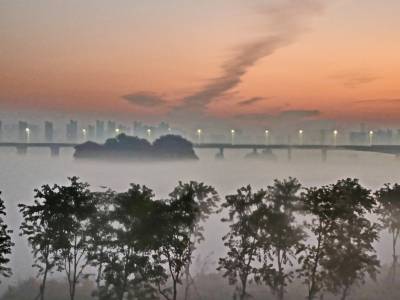 > 湖北武汉:东西湖大堤晨雾如云如诗如画美不胜收