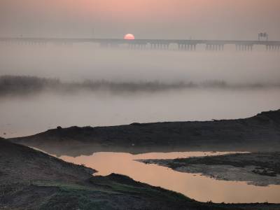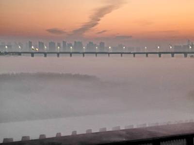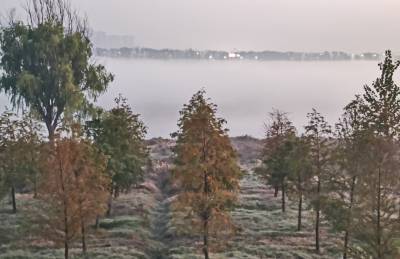 11月22日,是我国农历廿四个节气中的小雪节气。湖北省武汉市当天是阳光灿烂,当天早晨,受低温天气的影响,东西湖大堤府河内外水气蒸发,晨雾如云如海,如诗如画,美不胜收。`