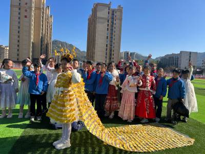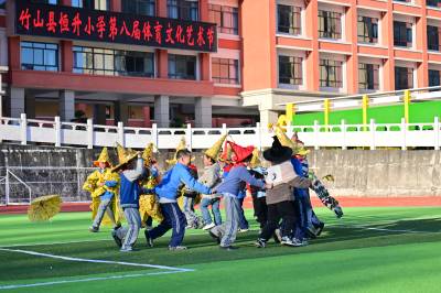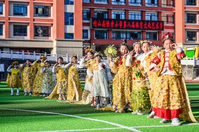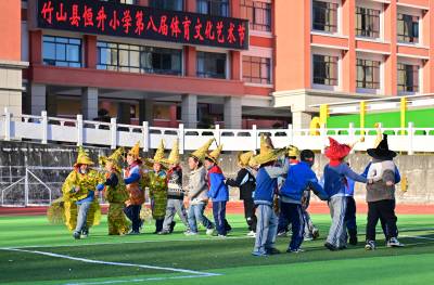 11月21日,竹山县恒升小学“快乐成长工程”暨第八届体育文化节开幕式上,三(5班)身着用银杏叶、枫叶、金菊等材料制作的服饰集体亮相,惊艳校园。
