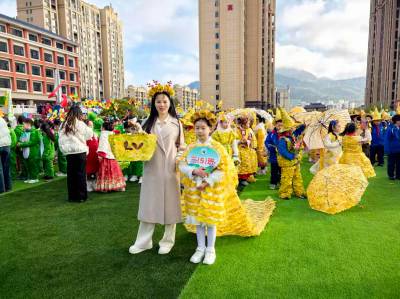 任务布置下去后,学生家长与孩子共同携手,用银杏叶、枫叶、山菊花等材料进行剪裁、拼贴,最终制作出“银杏公主”“枫叶武士”“落叶LV包”等20余件“秋季高定”作品伞、帽、披风等装饰品。学校体育文化节开幕式现场,当三(5)班领队抬着“秋天和我比了个‘叶’”的横幅,全班学生穿着亲手设计的“秋叶”服饰走过主席台前时,倍显尊贵的流动金黄与天真烂漫的童真笑容相映成趣,赢得阵阵掌声和欢呼声。