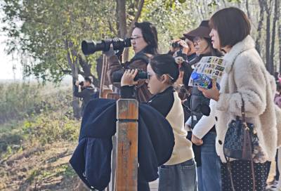 11月22日,是农历廿四个节气中的第廿十个小雪节气。武汉市"小雪"天里,阳光明媚,当天有众多市民、小朋友、摄影爱好者,来到了东西湖区柏泉府河湿地观鸟打鸟,增长环保知识,打卡定格各种候鸟的最美瞬间。来自远方的短嘴豆雁、灰雁、凤头潜鸭、绿头鸭、绿翅鸭、赤膀鸭、赤颈、白天鹅、卷羽鹈鹕、白琵鹭、白尾鹞、红颈瓣蹼鹬、白眉鸭、金眶鸻、大沙锥、红颈滨鹬、青脚滨鹬、尖尾滨鹬、长趾滨鹬、弯嘴滨鹬、普通燕鸻、黄鹡等候鸟都要在府河湿地停留越冬,时间主要集中在秋冬初春季节,它们在这里觅食、休息,为继续南迁补充能量。府河湿地所在地的武汉市东西湖区柏泉街道办事处,多年来大力改善了生态环境,每年都有候鸟在此生存和迁徙,都有专人专班进行日以继夜的坚守保护。