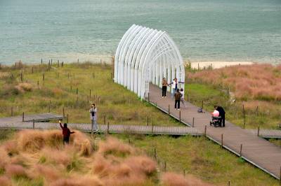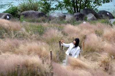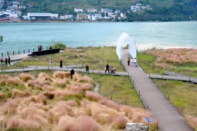 2025年11月24日,游客在长江西陵峡岸边的宜昌市夷陵区乐天溪镇莲沱畔公园里休闲游览峡江风景。初冬时节,各地游客置身宜昌青山绿水间,快乐享受峡江山水风景中的休闲时光,感受“天下三峡 至喜夷陵”的风情和魅力。(视界网 张国荣 摄)