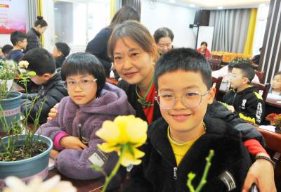 11月23日,巴东县官渡口镇五里堆社区新时代文明实践站内,暖意融融,捧着一盆盆新鲜绿植,注视着盛开的五颜六色花朵时,孩子们窃窃私语,心里甜滋滋、美滋滋的。