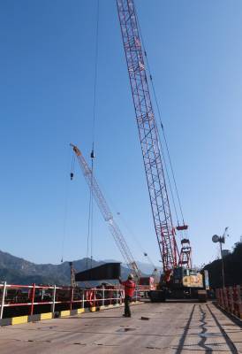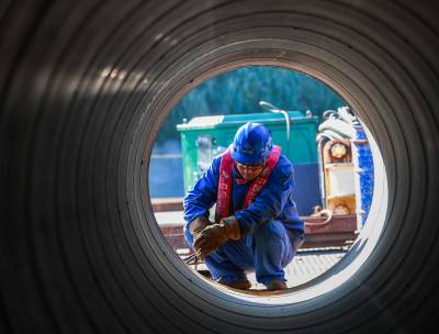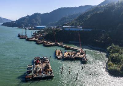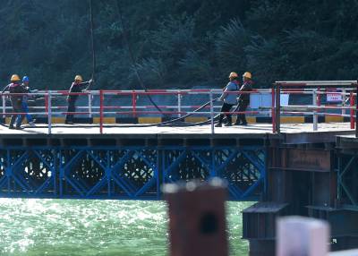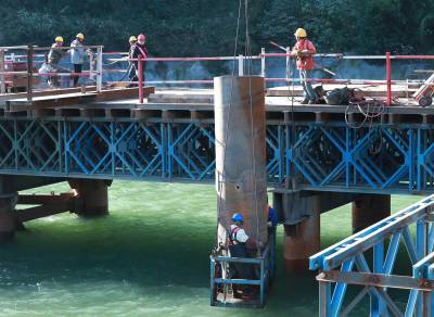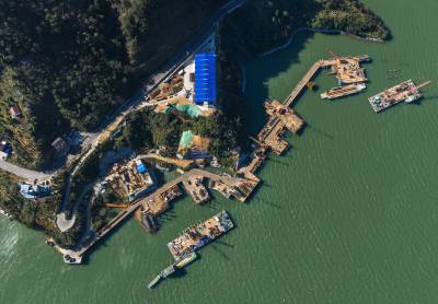 眼下,位于湖北省宜昌市秭归县的三峡枢纽江南成品油翻坝项目坝上码头建设工地,建设者正加紧进行靠船墩栽桩孔及管廊区域主体桩基施工,现场一派繁忙景象。
