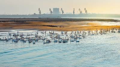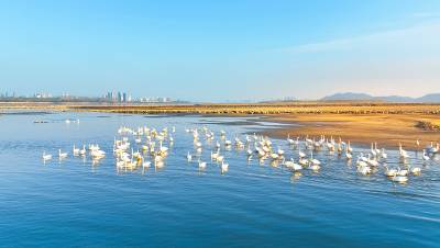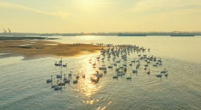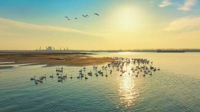 首批越冬天鹅飞抵长江鄂州段得胜洲(客户端采稿)