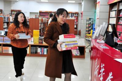 2025年11月26日,宜昌市夷陵区小溪塔街道各村(社区)的农家书屋管理员在夷陵新华书店“点单”挑选适用的图书。连日来,宜昌市夷陵区182家农家书屋管理员代表陆续来到夷陵新华书店,根据前期征集的村民阅读需求,现场挑选农技、养殖、文学、少儿等各类图书,充实到农家书屋书架。