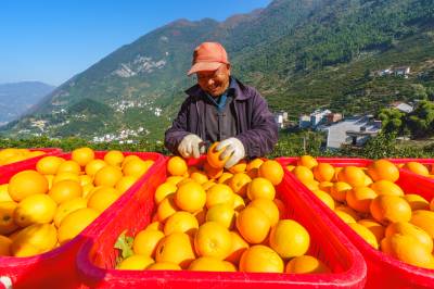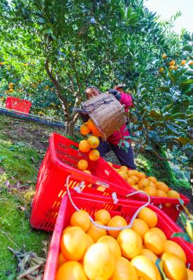 近日,三峡库区湖北省宜昌市秭归县8万多亩早红脐橙丰收上市,预计产量达15万吨。金灿灿的果实挂满枝头,田间地头洋溢着丰收喜悦。
