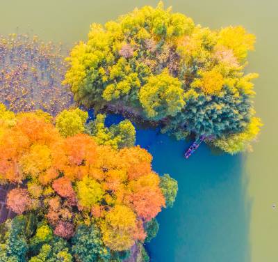 湖北武汉:涨渡湖迎来最佳秋色观赏期