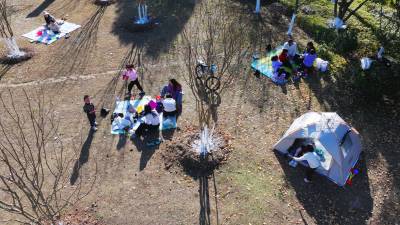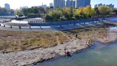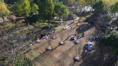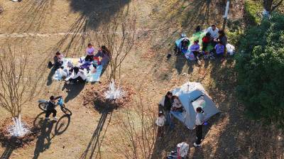 2025年11月29日,十堰市房县大河与马栏河交汇处的半岛湾河流湿地“口袋公园”,当地市民在公园露营、嬉水、沐浴冬日暖阳,享受免费游玩的乐趣。