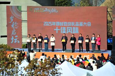 2025年11月29日,宜昌市夷陵区邓村豆腐乳开坛启礼系列活动顺利举行。在三峡茶旅小镇广场上,豆腐乳的醇香与游客的欢笑声和鸣,构成了一幅生动的农旅融合画卷。开坛仪式上,一坛豆腐乳被启封,经过专业评审团的严格甄选,十家豆腐乳作坊荣获“风味十佳”称号。“邓村味道”农产品展销区,“风味十佳”豆腐乳备受青睐,不少游客批量采购。活动期间,邓村豆腐乳、茶叶、腊货等相关特产销售额超过20万元,其中邓村豆腐乳卖出超2000坛,成为当之无愧的销售“明星”。
