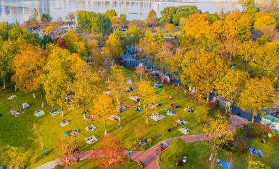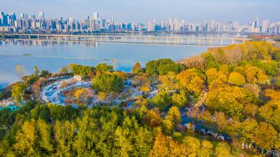 2025年11月30日,湖北武汉暖意洋洋,许多市民来到武昌沙湖公园散步、拍照、晒太阳,欣赏秋天带来的不一样的美景。从空中俯瞰,公园内层林尽染,美丽如画,已成为附近市民休闲放松、亲近自然的好去处。