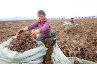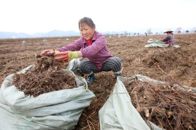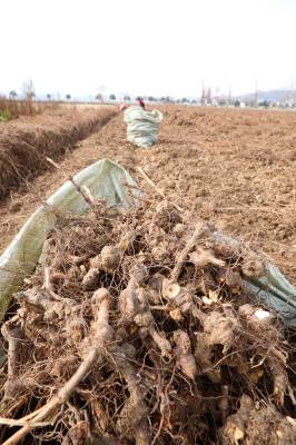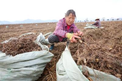 2025年11月30日,十堰市房县军店镇下茅坪村中药材种植基地,当地农民正在清理特色中药材金荞麦根茎泥土。金荞麦又名金锁银开、野荞麦,荞麦三七、荞麦当归,中药名“开金锁”,属国家二级保护植物,根茎入药,秸秆用作猪饲料添加剂。