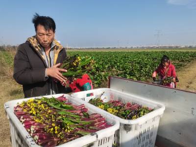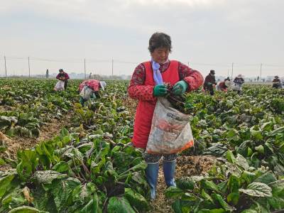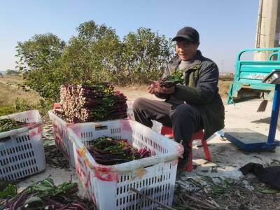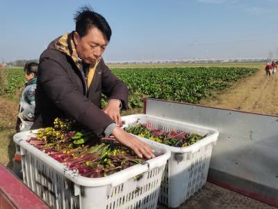 周国华今年58岁,一家5口人,他和老伴种了145亩蔬菜,其中100余亩种红菜薹。每天至少有20人在这里采摘打零工,多的时候达80余人。“以前秋收之后土地闲着,现在村里把空闲地盘活了,村民们不仅可以收土地转包费,还可以就近务工。菜薹刚上市时4—5元1斤,眼下正值采摘旺季,菜薹能卖到1.5元1斤。”周国华说,“冬闲田”种菜薹扮靓了村庄也富了村民,菜薹亩产4000多斤。