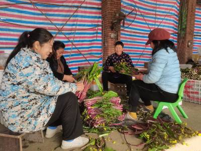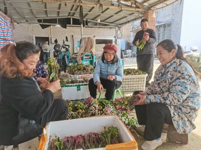 11月30日,走进分水镇联合村千亩蔬菜基地,满眼都是鲜嫩欲滴的菜薹。它们从肥沃的土壤里探出头来,茎秆纤细而翠绿,叶片上还带着清晨的露珠,在阳光的映照下,宛如一颗璀璨的珍珠,让菜薹显得更加清新可爱。村民们正忙着采摘、分拣、装运,脸上洋溢着灿烂的笑容。采摘菜薹的群众手法娴熟,不一会儿,背在身上的大包就装满了菜薹。