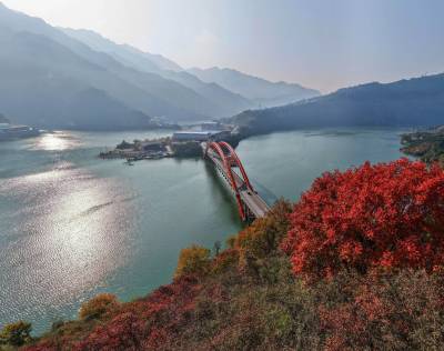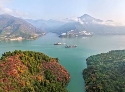 初冬时节,三峡库区湖北省宜昌市秭归县峡江两岸,橙黄橘绿、红叶碧水,色彩斑斓,勾勒出一幅幅靓丽的和美乡村生态新画卷。