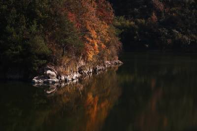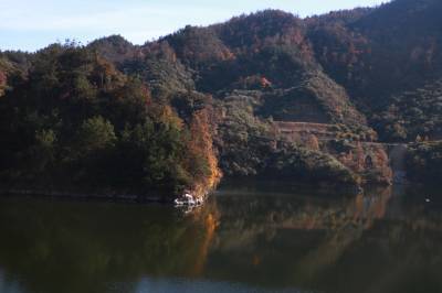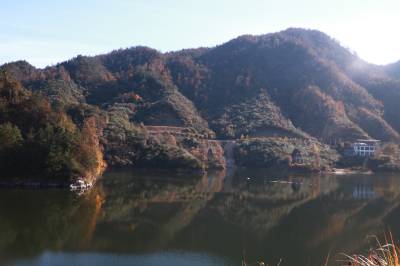 11月30日,市民趁周末来到英山县温泉镇龙潭畈村龙潭畈水库享受冬日暖阳,欣赏水中红叶倒影,拍照打卡。清风荡漾,水波不兴,水库周围漫山遍野的油茶开花,与色彩斑斓的红叶构成初冬最美风光。