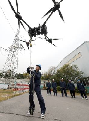 湖北荆门:电力“飞手”开展无人机智能除冰演练