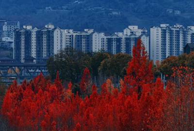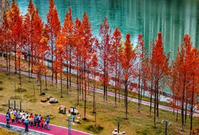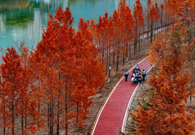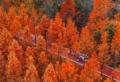 武汉:栾树"黄金"叶随风飘起美如画(客户端采稿)