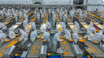2025年12月5日,湖北省宜昌市秭归县外贸加工企业一片繁忙,工人们开足马力加紧生产。新鲜的柑橘经过深加工变成罐头、橙皮丝、橙醋等多种产品出口至欧美、东南亚等140多个国家和地区,实现果农和企业双增收。 近年来,秭归县通过“企业+合作社+农户”的模式,积极推动脐橙产业融合发展,全面提升生产质量与效益,为乡村全面振兴注入持续动力。