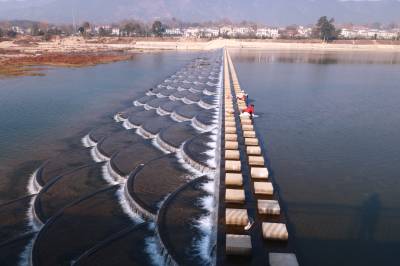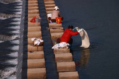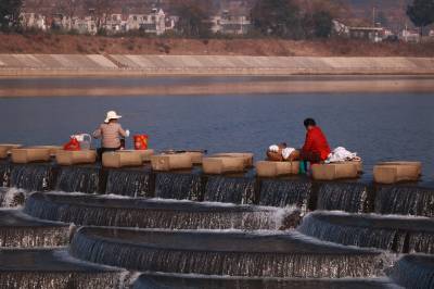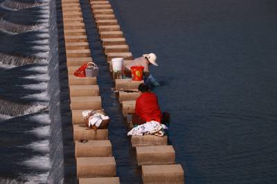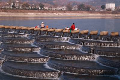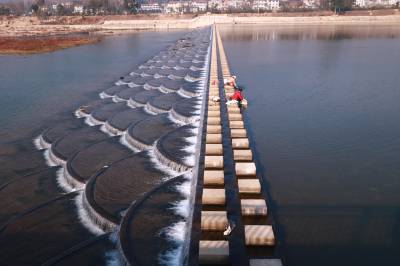 12月6日,英山县杨柳湾镇东河鱼鳞坝似银鳞铺展,游客临水赏景,村民在上面浆洗被单,岸边村落错落、山林斑斓,潺潺河水构成一幅冬日优美画卷。
