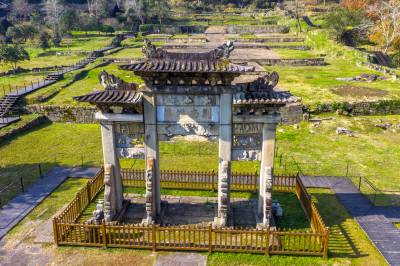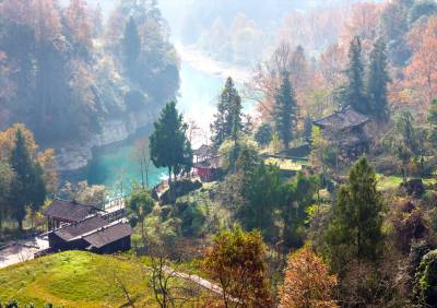 世界非遗唐崖土司城:初冬唐崖河畔层林尽染,荆南雄镇牌坊映古寨