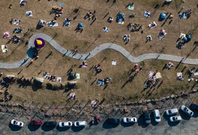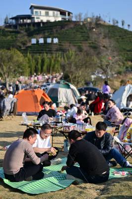 12月7日,竹山县城关镇霍河库区刘家山茶场多个休闲露营草坪和霍河流域多个休闲乐园热闹非凡,人们以“晒太阳+拍照打卡+有氧运动+炸鸡+可乐+遛娃”等方式,亲近大自然,受享冬日美好暖阳。