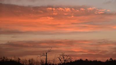 2025年12月7日是大雪节气,在湖北省十堰市郧阳区杨溪铺镇云彩山村拍摄的朝霞。视界网王涛摄
