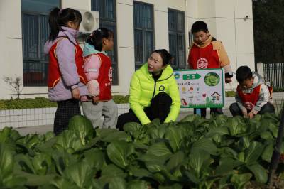 “这棵白菜叶片上有虫洞,说明我们没有打农药,是健康的蔬菜。”老师指着一片叶子上的自然痕迹,向孩子们讲解生态种植的意义。孩子们听得津津有味,不时发出惊叹声。