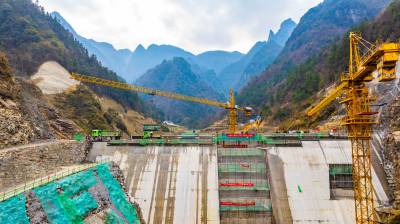 湖北竹山:钦峪堵河大桥建设加速施工(客户端采稿)